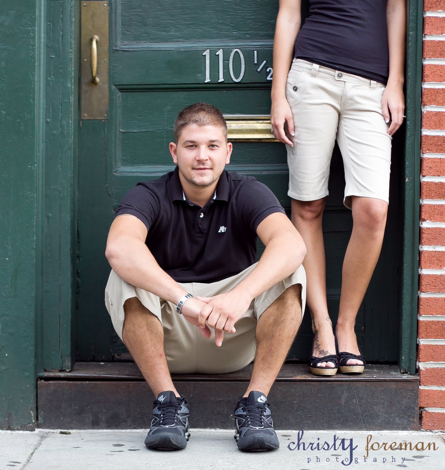 Anyway, I feel much better this morning so here it is...I met up with Nikki and Casey downtown at the Old City for their engagement photos and at first we were a little nervous because well our weather here has been a little crazy lately. Hot, then rainy, then it will be blasting HOT again, so you never know what you are going to get. This Thursday was a little if-y though because it had been very overcast all day and the weather man was calling for rain later that evening, right around the time that we were going to meet up. We decided to go for it and I'm so glad we did because we had some amazing light and ever better, got some gorgeous photos! Casey was so glad that in most of the pictures I told him that his job was to relax, and he said that he could definitely do that! I had tons of fun with you guys and I hope even more that you had a great time with me! I cannot wait to shoot your wedding in January! Now, on to the best part of the post, the pictures...